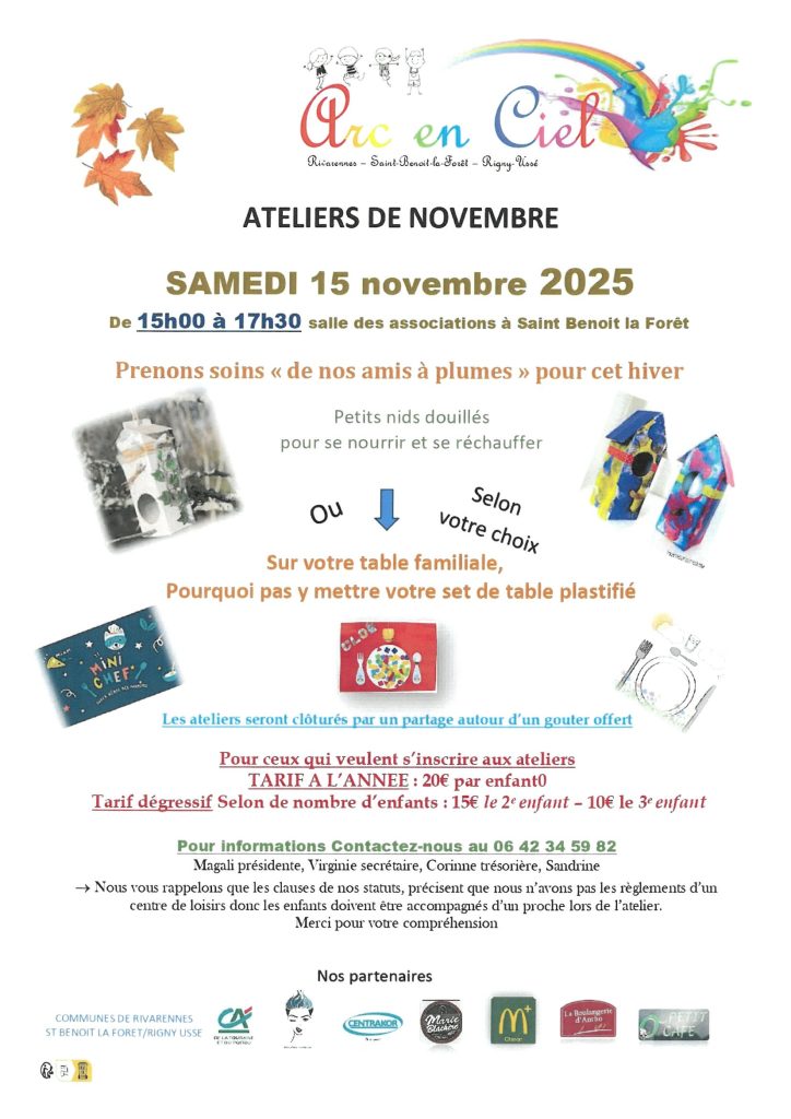 Atelier ARC EN CIEL le 15 novembre Saint benoit la forêt