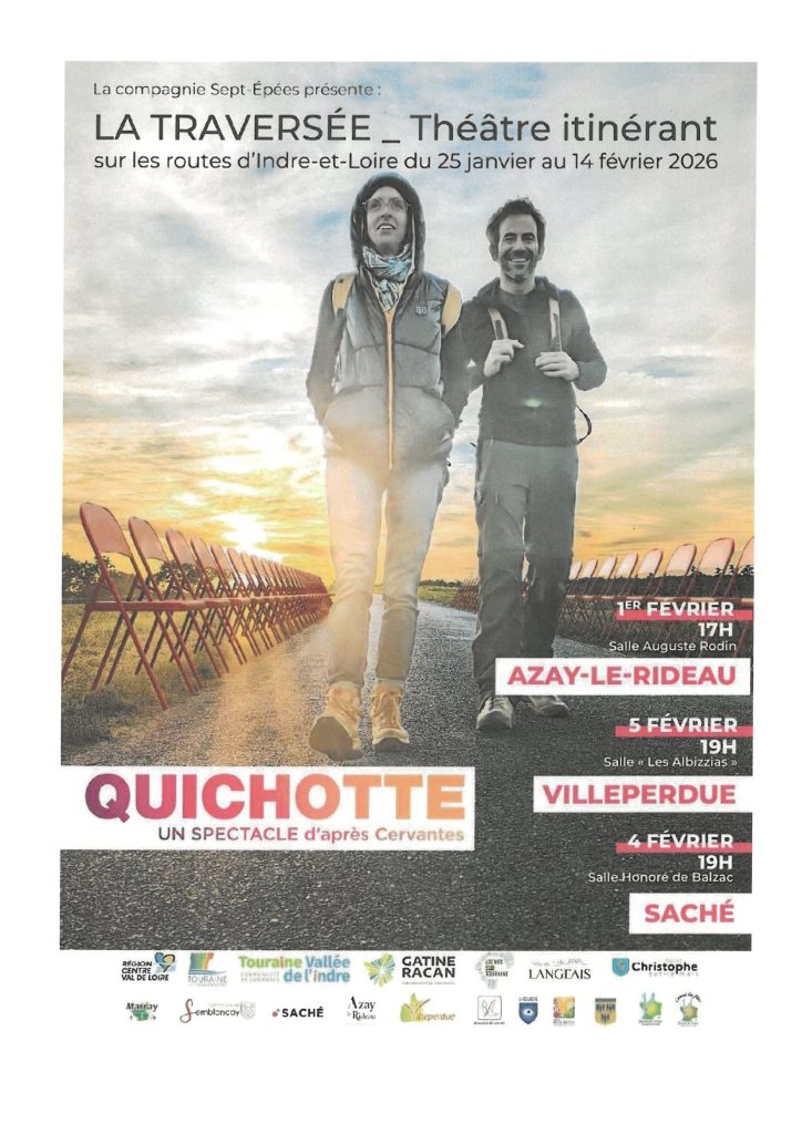 Quichotte : L’histoire du fameux chevalier de Cervantès racontée et jouée à tambour battant ! Un spectacle qui allie humour, énergie, moments épiques et émotions, et qui entraîne le public dans un spectacle interactif, au cœur des folles aventures de Don Quichotte et Sancho Pança !