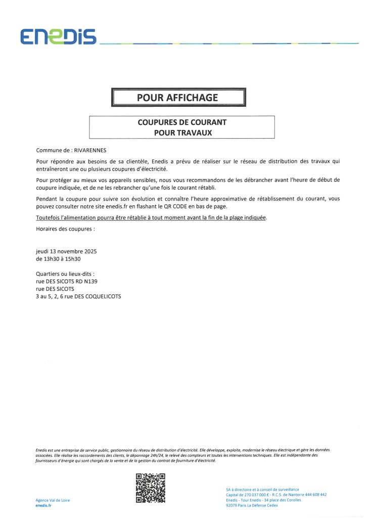 Arrêté 37-2025 – élaboration du schéma directeur d’assainissement de la commune de Rivarennes du 22/09/2025 au 30/11/2027