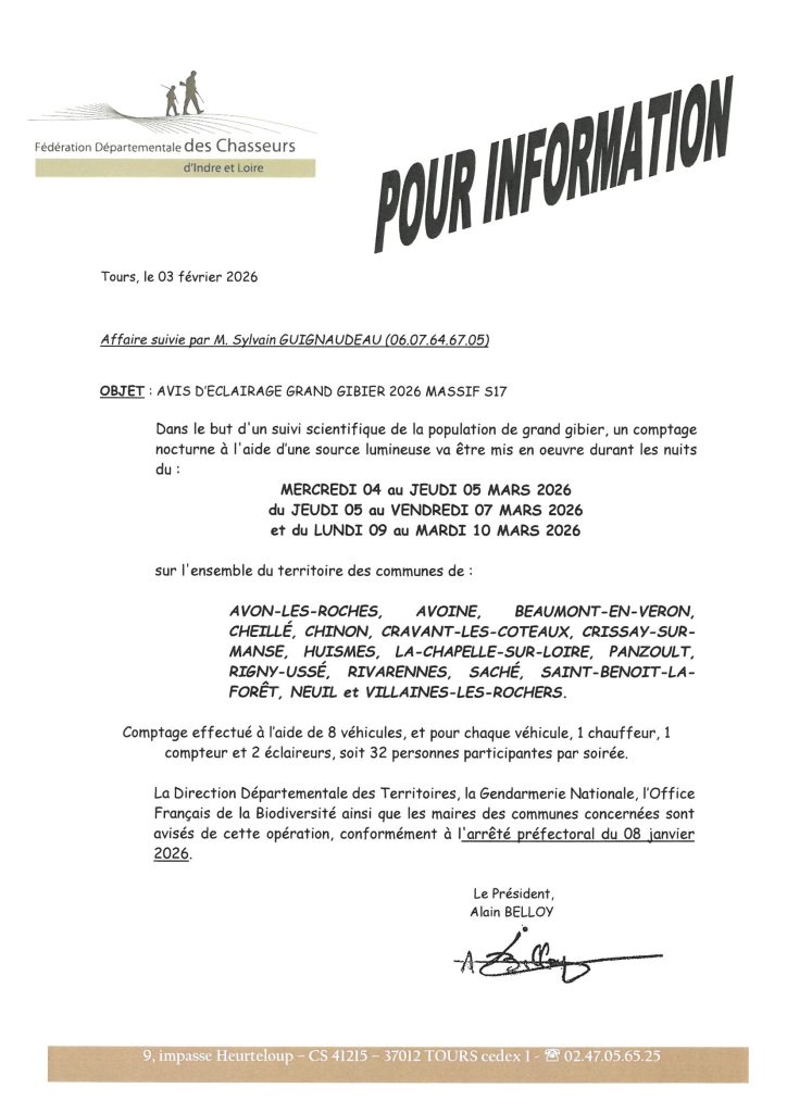 CHASSE: Avis d’éclairage grand gibier 2026 massif S17